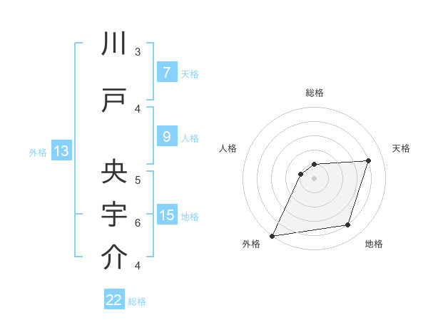 川戸 央宇介さんを姓名の画数から五運を鑑定