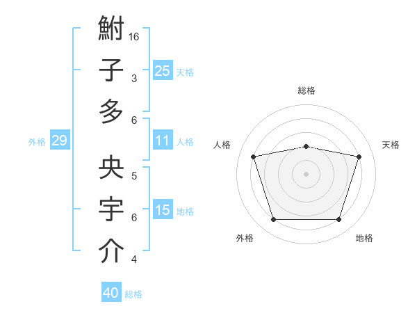 鮒子多 央宇介さんを姓名の画数から五運を鑑定