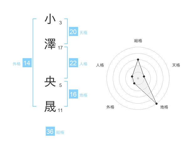 小澤 央晟さんの天格は20画の1点!