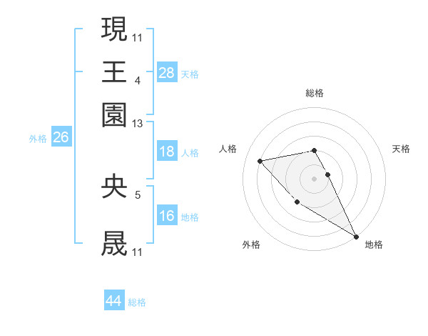 現王園 央晟さんを姓名の画数から五運を鑑定