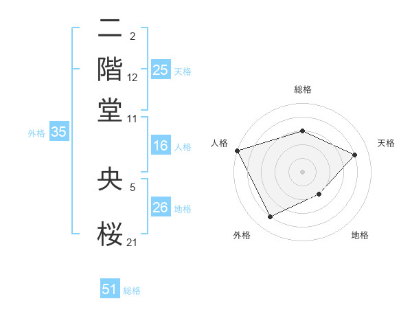 二階堂 央桜さんを姓名の画数から五運を鑑定