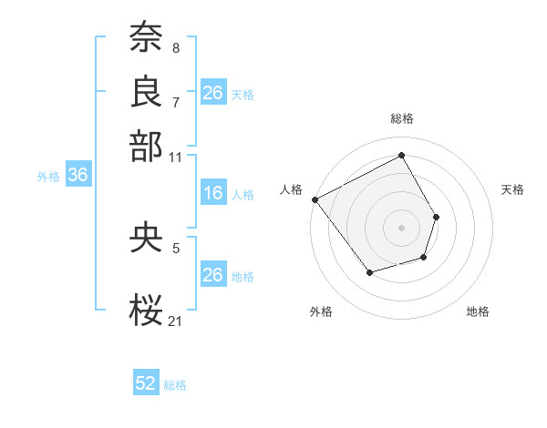 奈良部 央桜さんの総格は52画の4点!