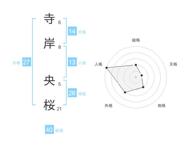 寺岸 央桜さんを姓名の画数から五運を鑑定