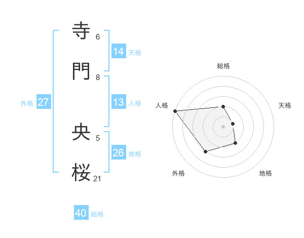 寺門 央桜さんを姓名の画数から五運を鑑定