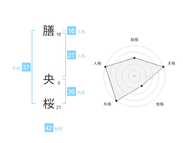 膳 央桜さんの外格は37画の5点!