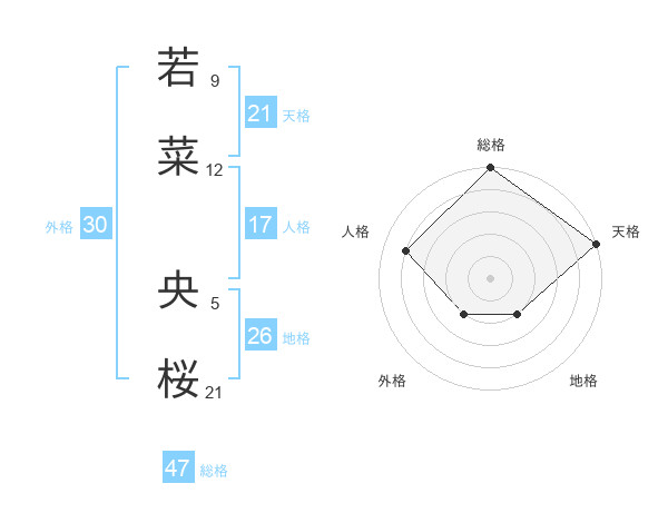 若菜 央桜さんを姓名の画数から五運を鑑定