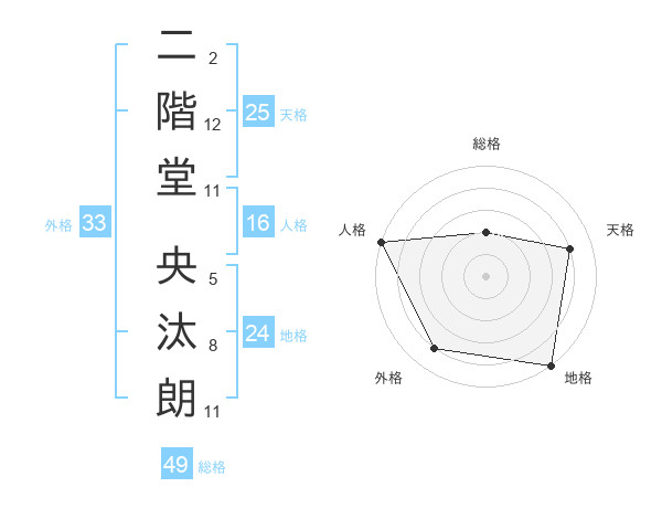 二階堂 央汰朗さんの地格は24画の5点!