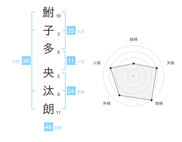 鮒子多 央汰朗さんを姓名の画数から五運を鑑定