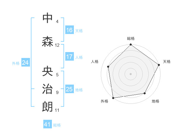 中森 央治朗さんを姓名の画数から五運を鑑定
