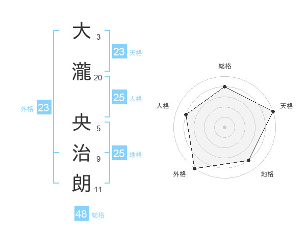大瀧 央治朗さんを姓名の画数から五運を鑑定