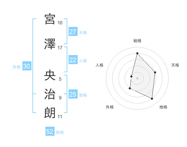 宮澤 央治朗さんの総格は52画の4点