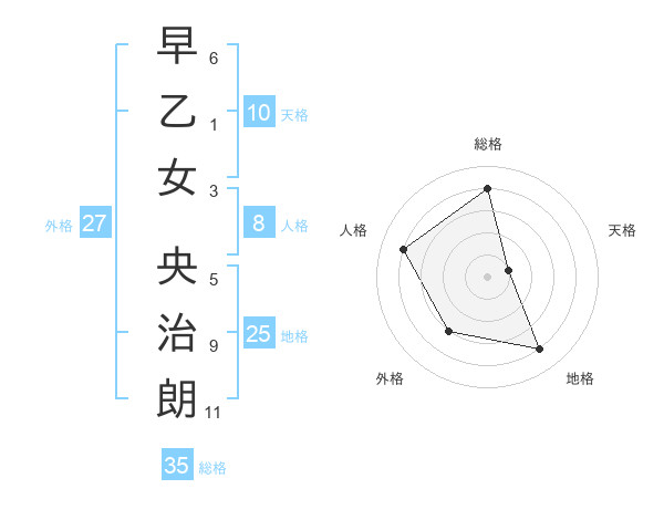 早乙女 央治朗さんを姓名の画数から五運を鑑定