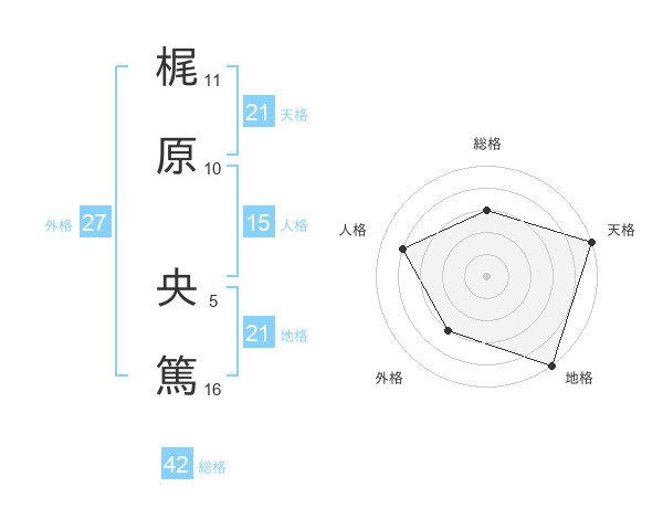 梶原 央篤さんを姓名の画数から五運を鑑定