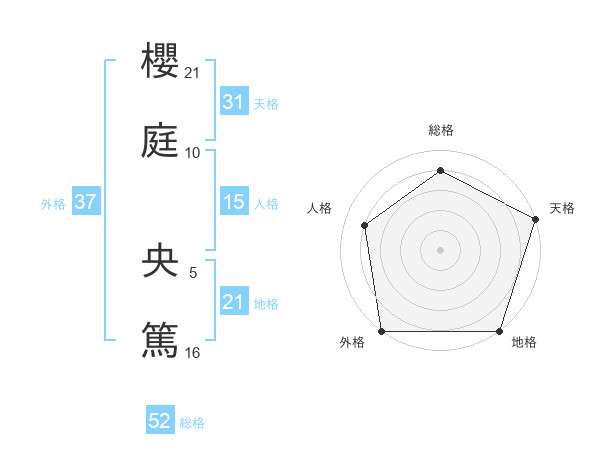 櫻庭 央篤さんを姓名の画数から五運を鑑定