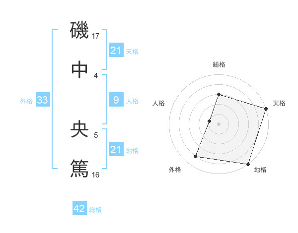 磯中 央篤さんを姓名の画数から五運を鑑定