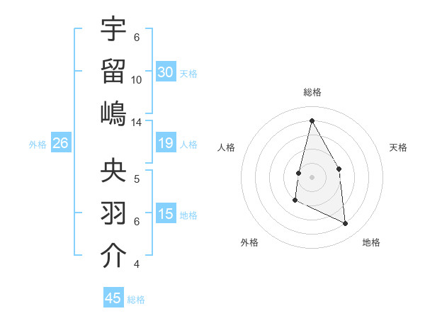 宇留嶋 央羽介さんを姓名の画数から五運を鑑定