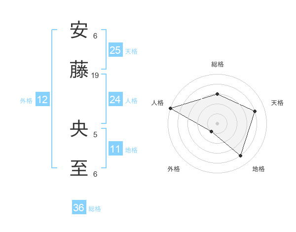 安藤 央至さんの総格は36画の3点!
