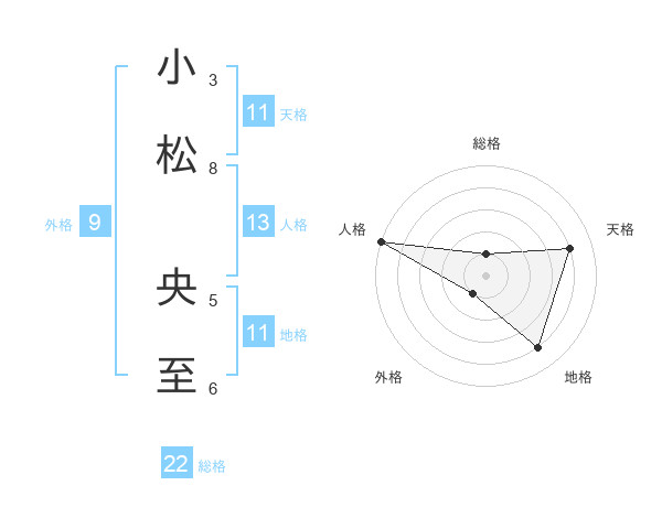 小松 央至さんの総格は22画の1点!