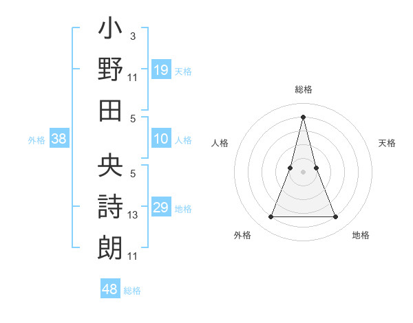 小野田 央詩朗さんを姓名の画数から五運を鑑定