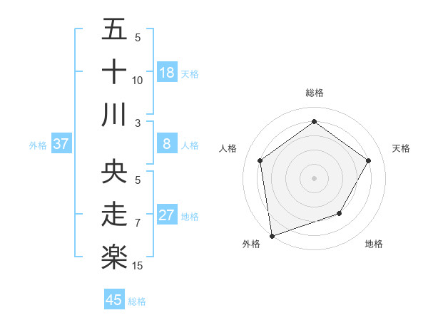 五十川 央走楽さんを姓名の画数から五運を鑑定
