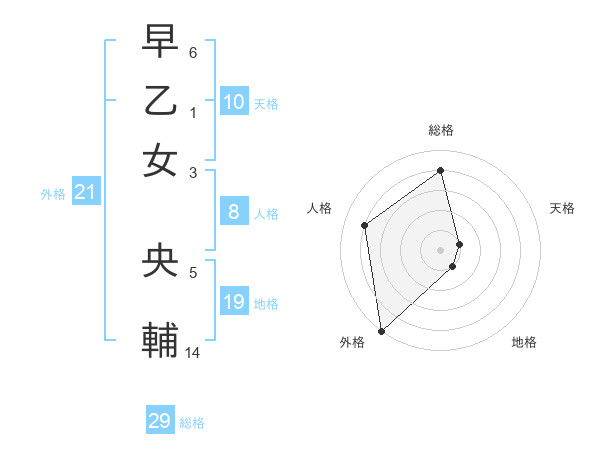 早乙女 央輔さんの総格は29画の4点!