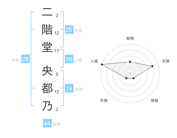二階堂 央都乃さんを姓名の画数から五運を鑑定