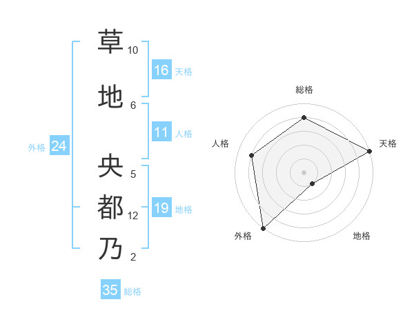 草地 央都乃さんを姓名の画数から五運を鑑定