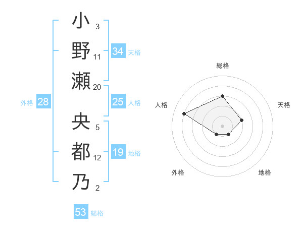 小野瀬 央都乃さんを姓名の画数から五運を鑑定