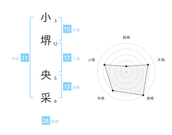小堺 央采さんの総格は28画の1点!