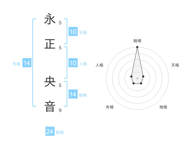 永正 央音さんの総格は24画の5点!