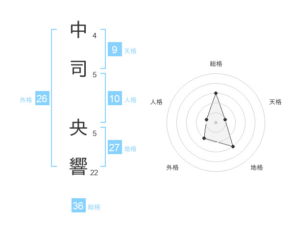 中司 央響さんの総格は36画の3点!