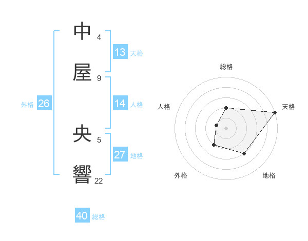 中屋 央響さんの天格は13画の5点!