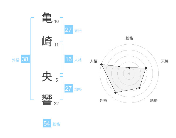 亀崎 央響さんの外格は38画の4点!
