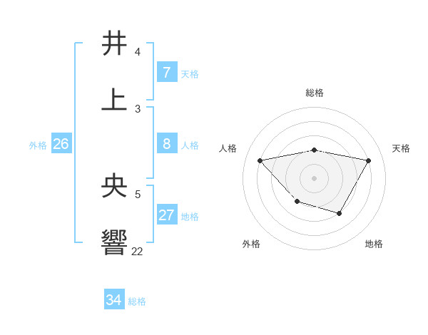 井上 央響さんの総格は34画の2点!
