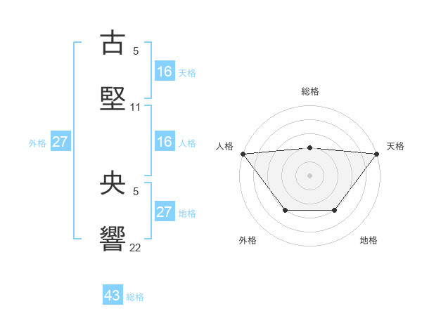 古堅 央響さんの天格は16画の5点!