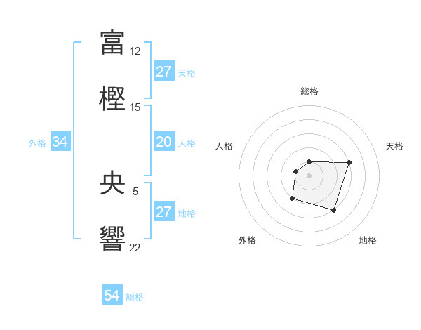 富樫 央響さんの総格は54画の1点!