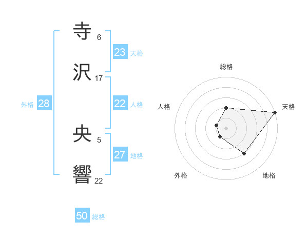 寺沢 央響さんの総格は50画の2点!