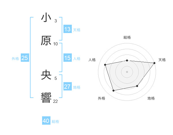 小原 央響さんの総格は40画の2点!