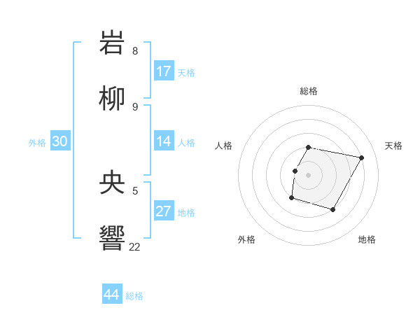 岩柳 央響さんの総格は44画の2点!