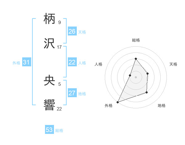 柄沢 央響さんを姓名の画数から五運を鑑定