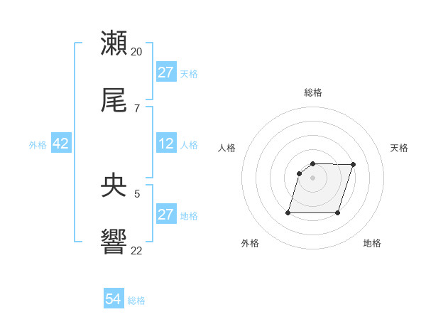 瀬尾 央響さんの総格は54画の1点!