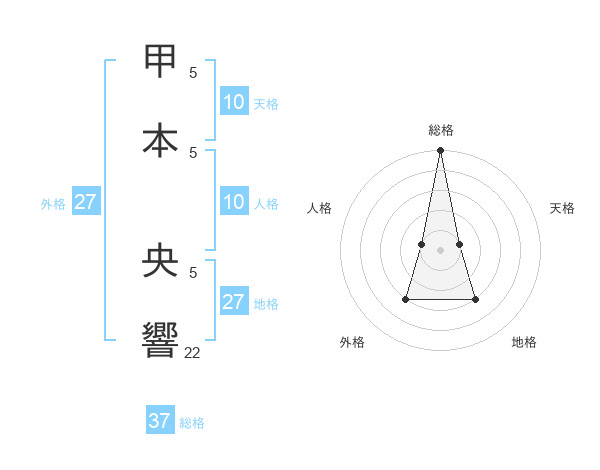 甲本 央響さんの総格は37画の5点!