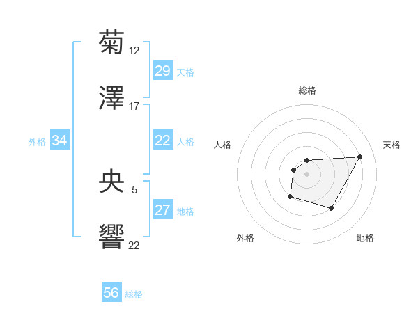 菊澤 央響さんの総格は56画の1点!