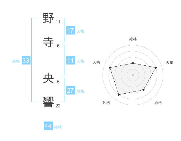 野寺 央響さんの総格は44画の2点!