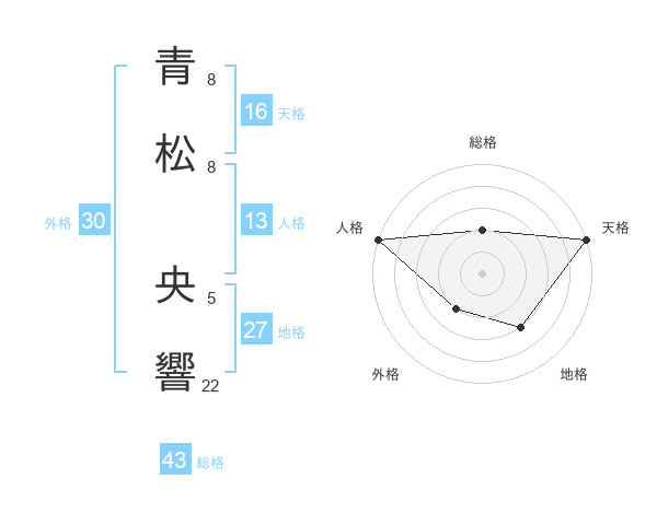 青松 央響さんの天格は16画の5点!