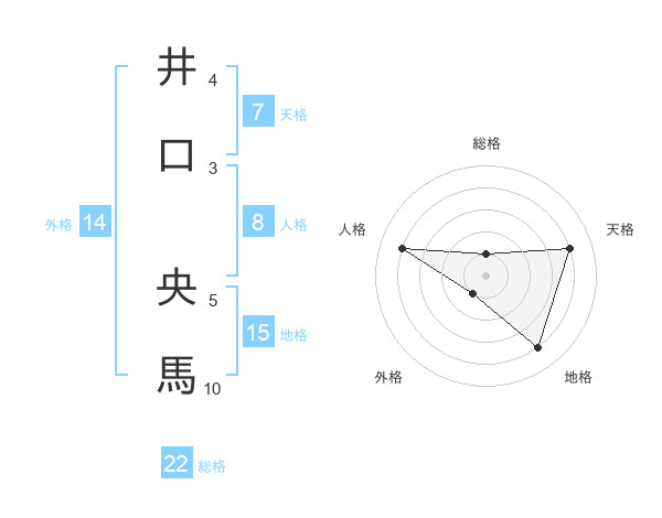 井口 央馬さんの総格は22画の1点!