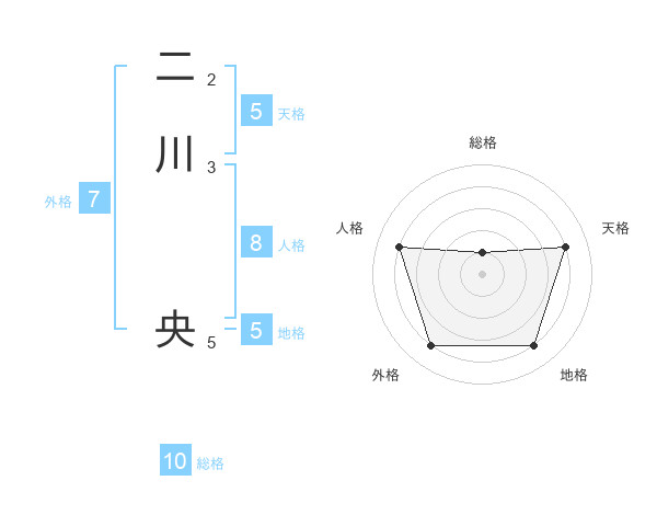二川 央さんの天格は5画の4点!