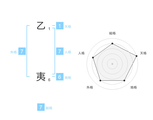 乙 夷さんの総格は7画の4点!