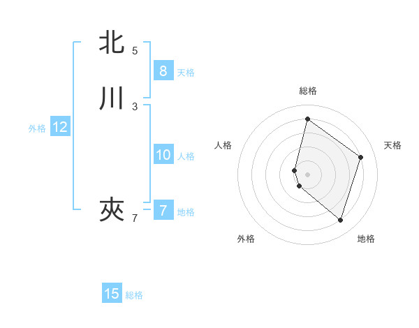 北川 夾さんの総格は15画の4点!