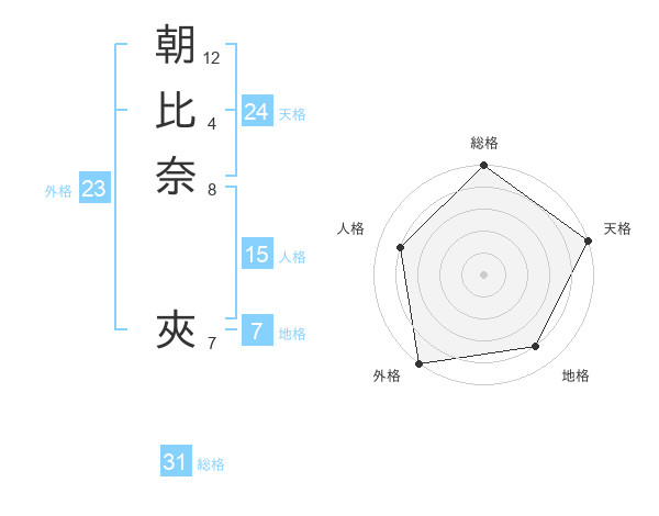 朝比奈 夾さんの総格は31画の5点!